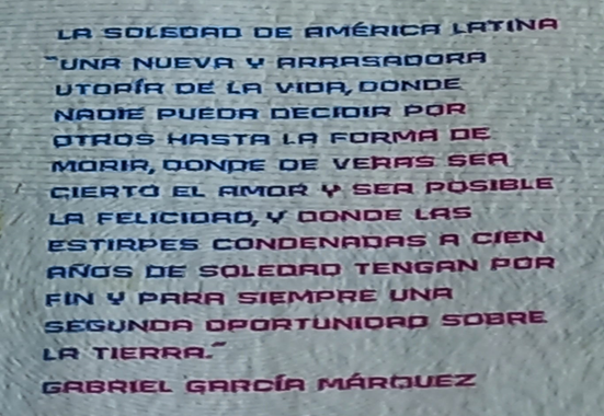 “Una nueva y arrasadora utopía de la vida, donde nadie pueda decidir por otros hasta la forma de morir, donde de veras sea cierto el amor y ser posible la felicidad, y donde las estirpes condenadas a cien años de soledad tengan por fin y para siempre una segunda oportunidad sobre la tierra”.